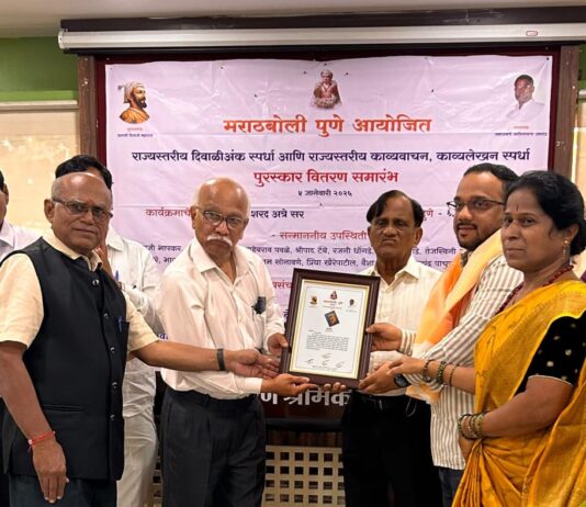 मुळशीतील शिवराज दिवाळी अंकाचा राज्यस्तरीय पुरस्काराने गौरव